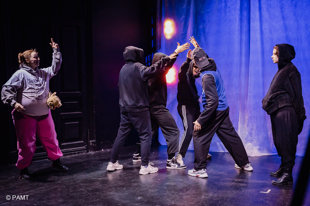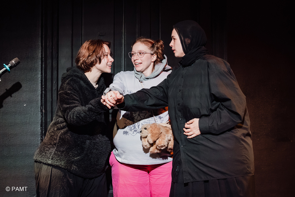 Режиссер эскиза Лев Северухин сознательно останавливается на завязке, не раскрывая историю до конца. Такой прием не только дает возможность вовлечься в нарратив, но и удерживает интерес, словно оставляя в воздухе риторическое: «Продолжение следует». В то же время это может быть и практическим решением: не пытаться втиснуть масштабный роман, эдакое роуд-муви в короткий формат. Вместо этого – сфокусироваться на эмоционально сильном начале, передать атмосферу и дать аудитории свободу интерпретации на тему «Что будет дальше». Как показало обсуждение со зрителями, фантазия и мысли человека безграничны, когда поводом дискуссии выступает нечто необычное и дерзкое для молодежной публики, вышедшее из-под пера пушкинистки и автора переработки (верлибром!) «Онегина» на современный лад. Книга про Мирей и ее подруг написана в прозе, но в процессе ее перевода и издания в России возникли свои сложности: «скачки» между подростковой прямой речью и академическим языком, актуальность сленговых выражений.
